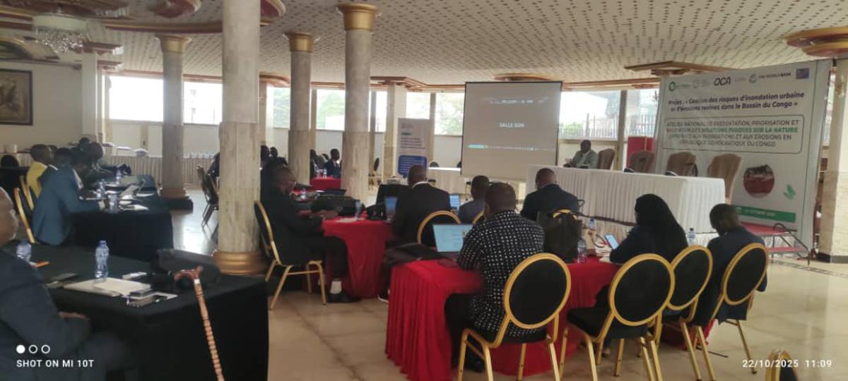 Publié le mer, 22/10/2025 – 18:30 | Modifié le mer, 22/10/2025 – 18:30 CCAO Trésor Badisungu inondation Erosions Pluies Environnement Actualité NationalsharetweetFacebook Twitter LinkedIn WordPress Messenger WhatsApp Skype Viber Message Pinterest Email ShareVue de la salle, mercredi 22 octobre 2025, de l’Atelier de validation des Solutions Fondées sur la Nature (SFN) identifiées pour faire face aux inondations et aux érosions dans les villes de Kinshasa et Kikwit.Photo/Droits Tiers.Vue de la salle, mercredi 22 octobre 2025, de l’Atelier de validation des Solutions Fondées sur la Nature (SFN) identifiées pour faire face aux inondations et aux érosions dans les villes de Kinshasa et Kikwit.Photo/Droits Tiers. En début de cette saison de pluie, près de 100 experts en environnement proposent des solutions fondées sur la nature (SFN) pour prévenir des inondations et érosions au pays. Réunis dans un atelier organisé, mercredi 22 octobre, par l’ONG Climate Change Africa Opportunities (CCAO) et son partenaire OCA Global, à Kinshasa, ils ont recommandé la végétalisation de différentes infrastructures de base notamment des routes construites à travers le pays. Ces experts ont conseillé à la population à recourir à la construction des sacs végétalisés et la restauration urbaine avec le reboisement pour faciliter la rétention de sol et prévenir de têtes d’érosions comme à Kinshasa. A cette occasion, le responsable de l’ONG Climate Change Africa Opportunities, attire la sonnette d’alarme et appelle la population à s’organiser, en adoptant des comportements responsables. Suivez les propos Trésor Badisungu. Cette rencontre s’inscrit dans le cadre du projet Gestion des risques d’inondation urbaine et d’érosion des ravines dans le Bassin du Congo. Sur financement de la Banque MOndiale, ce projet est opérationnel dans quelques pays du Bassin du Congo dont le Burundi, la RCA, la RDC, la République du Congo et le Gabon. Il vulgarise de pratiques prioritaires de gestion des sols, de l’eau et des terres fondées sur la nature grâce à un soutien au renforcement des capacités des gouvernements et des communautés locales. Les principaux composants de ces projets sont axés sur le développement d’infrastructures urbaines résilientes au climat, le renforcement des capacités et la réponse d’urgence en cas de catastrophe Navigation de l’article Augustin Tagaisabo : « La saison des pluies de cette année 2025 sera déficitaire » L’ASBL « Nellyma-Votre » sensibilise aux bienfaits de l’agriculture biologique