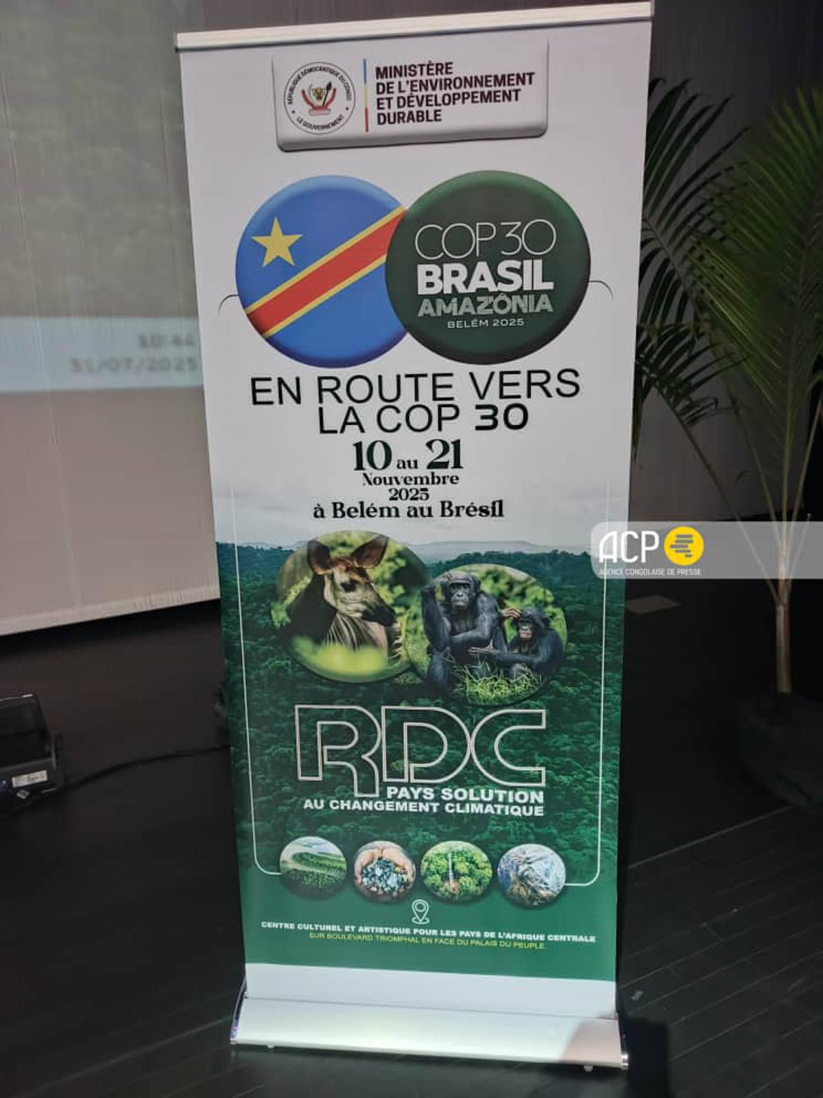 Enseigne sur les travaux préparatoires de la COP 30 juillet 2025, au Centre culturel de Kinshasa.